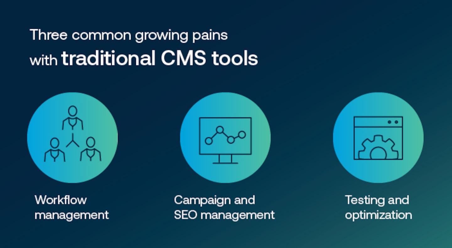 To meet their growing digital needs, marketers have had to adopt adjacent technologies and orchestrate complex workarounds to enable their CMS to keep up. These workflow complexities along with the added weight of licensing fees, ongoing maintenance and liability for so many disparate tools have stripped marketers of their nimbleness.